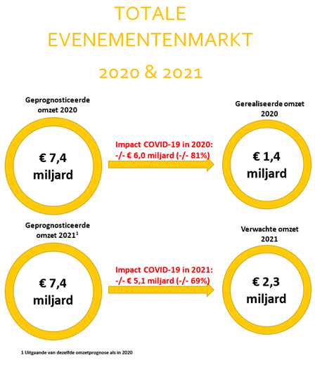 EVENTBRANCHE CORONA - Dat de evenementensector in deze corona-crisis misschien wel de zwaarste getroffen branche is, dat mag inmiddels wel duidelijk zijn. Zowel festivals en publieksevenementen als de enorme zakelijke markt van events, live communicatie, congressen, beurzen en experience marketing kwamen tegen een stootblok tot stilstaan. Nu heel langzaam weer wat georganiseerd wordt, is het verlies en de schade enorm!