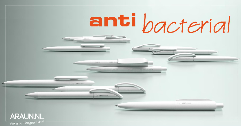 Tegenwoordig is het belangrijk om zo hygiënisch mogelijk te werken. Deze antibacteriële pennen van Prodir dragen daar een steentje aan bij. Ze zijn gemaakt van antibacterieel plastic en beschikbaar in diverse modellen en kleuren, bedrukt met jouw bedrijfslogo.