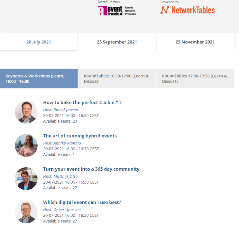 Een online community met honderden kennissessies en een netwerk van 1000-en eventprofessionals en opdrachtgevers over de hele wereld. NetworkTables Connect (Online Community) deel 2 vindt plaats op 20 juli 2021, morgen dus!