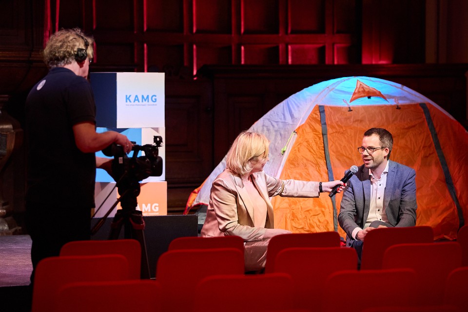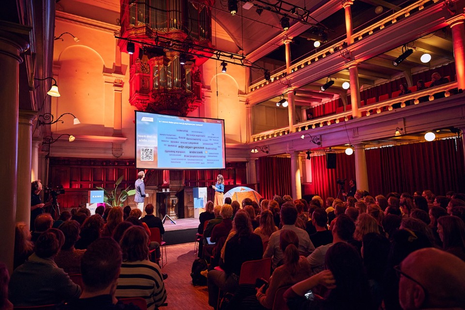 Expeditie KAMG hield een traditioneel congresprogramma aan, met keynotes en deelsessies. ‘Om iedereen te laten landen én te doen beseffen, begonnen we met het lied ‘Mag ik bij je schuilen’ van Claudia de Breij’, vertelt Gerdie. ‘Daarna sprak Michelle van Tongerloo, zij is straatarts in Rotterdam en vertelde over een waanzinnig indrukwekkende casus die bij mij in ieder geval voor kippenvel en tranen zorgde.’