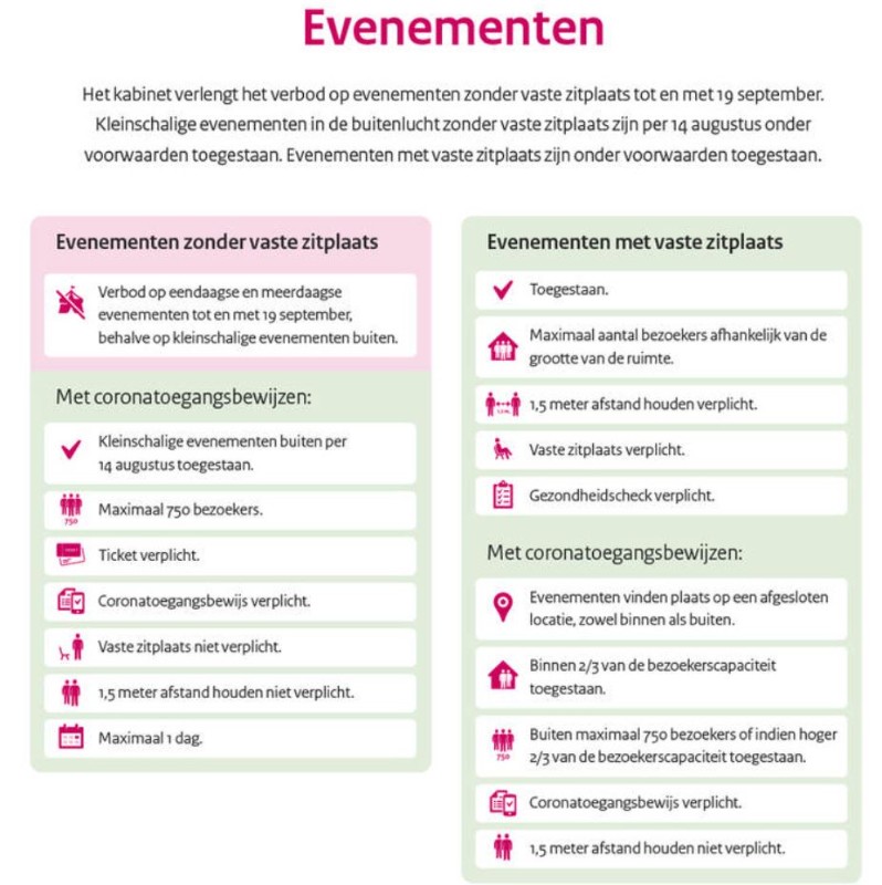 MEER LEZEN: het totaaloverzicht van de maatregelen en voorwaarden voor evenementen tot 20 september