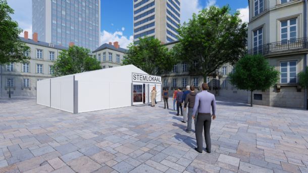Op de website van Maessen Tenten onder de Covid-19 button/ Mobiel Stemlokaal staan de voorbeelden in 3D gepresenteerd plus animatie welke de vele mogelijkheden inzichtelijk maakt.