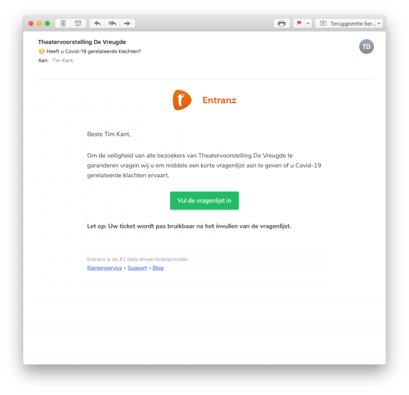 En ook ontbrak er nog iets. "Bij het versoepelen van het beleid is er ingezet op het vooraf checken van de gezondheid van bezoekers, om ze verdere verspreiding tegen te gaan. Bij de kappers en dergelijke gebeurt dit al een tijdje, maar hoe check je vooraf of een bezoeker van jouw kroeg bepaalde symptomen heeft? Die check hebben wij bij Entranz nu geautomatiseerd."